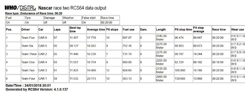 Our Nascar club car team race is the original WHO/digital format and it works very
