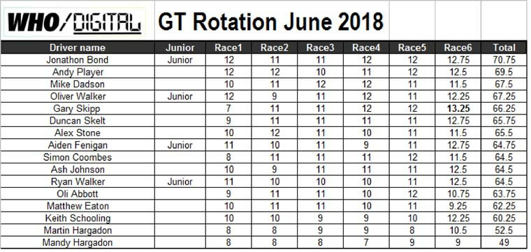 In terms of consistency, Jonathon was looking ominous. Up against Aiden, Oliver and Ryan, he knew he needed a good performance to win yet another GT rotation junior medal. He was the fifth racer to finish all six heats and sat top of the standings with 70.75 laps and only Oliver of the juniors to come. When Oliver failed to better that score, Jonathon knew he’d grabbed the junior medal. After both Duncan and Andy fell short, his rivals for top spot overall were getting few and far between.