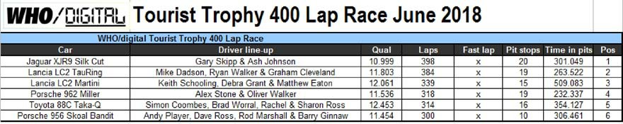 The big evening event was the WHO Tourist Trophy endurance race. This year it would